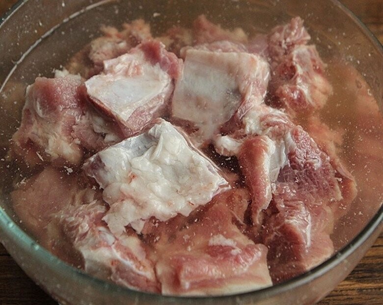 Cách xử lý đúng là ngâm sườn với nước lạnh pha baking soda trước khi chần. Baking soda có tính kiềm nhẹ, giúp đẩy huyết thừa trong xương ra ngoài, đồng thời làm sườn mềm nhanh hơn. Nhờ vậy, khi nấu canh sẽ trong, ngọt và không bị tanh.