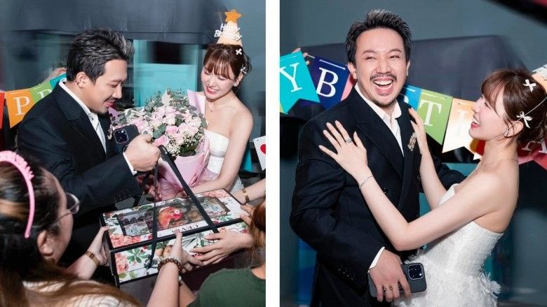 Bên cạnh loạt ảnh của Hari Won, Trấn Thành cũng chia sẻ những khoảnh khắc tổ chức sinh nhật cho bà xã hơn tuổi ngay tại trường ngay. Cặp đôi khiến nhiều người ghen tỵ vì vô cùng viên mãn.