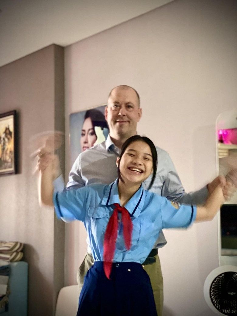Cô bé cũng rất yêu quý hai em sinh đôi cùng cha khác mẹ của mình.