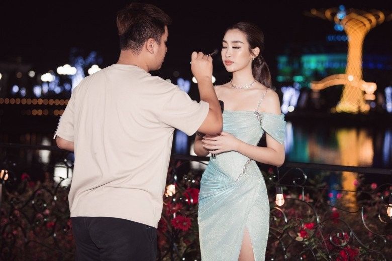Đỗ Mỹ Linh trắng hồng xinh xắn trong cả những khoảnh khắc hậu trường làm việc.