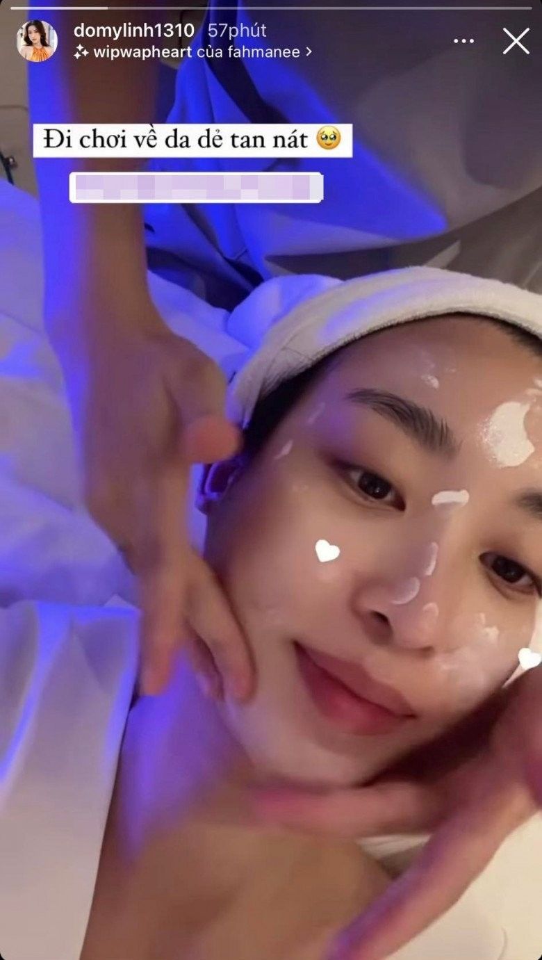 Người đẹp chú thích: "Đi chơi về da dẻ tan nát". Trong hình, cô đang tận hưởng giây phút được chăm sóc làn da chuyên sâu tại cơ sở thẩm mỹ xịn sò.