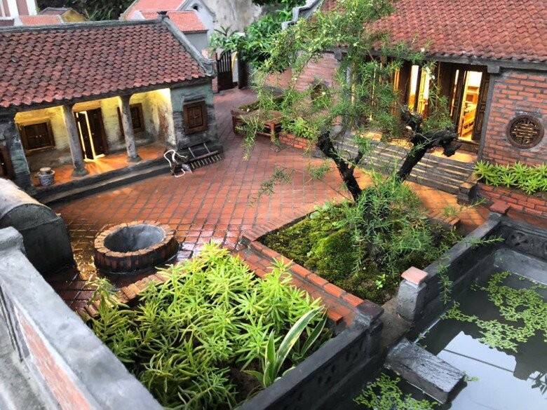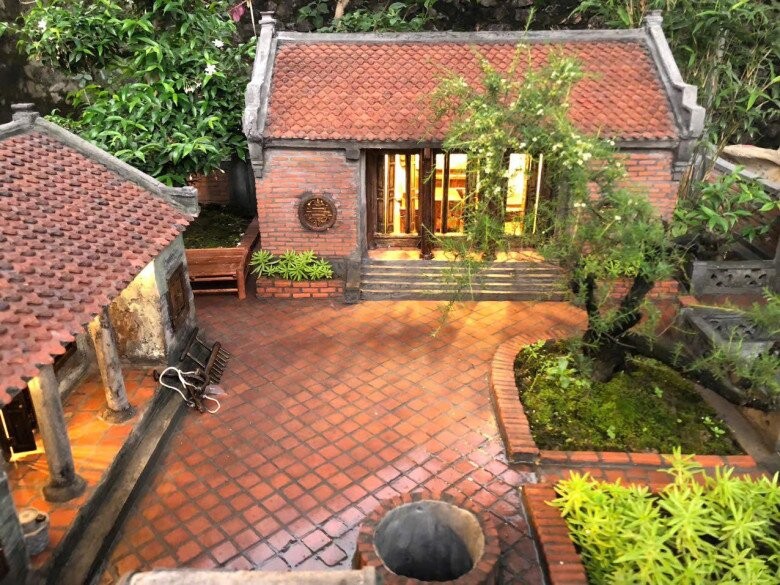 Khuôn viên sân lát gạch, giếng nước và cây cổ thụ ở giữa sân là những hình ảnh quen thuộc của làng quê Bắc Bộ, được mô phỏng rất chân thực trong mô hình.
