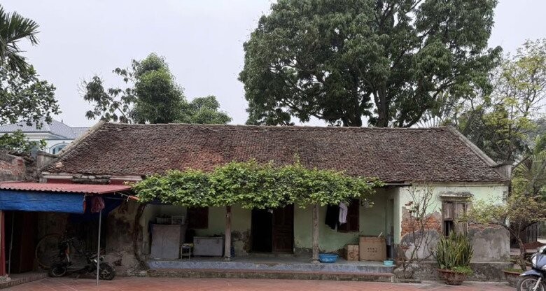 Phiên bản ngôi nhà sau khi được làm mới cách đây hơn 20 năm. Mái ngói mới, tường gạch đỏ và sân lát gạch mang lại diện mạo khang trang hơn nhưng vẫn giữ hồn quê.