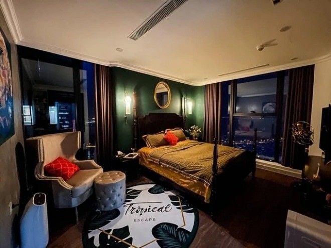 Trong khi đó phòng ngủ của nữ ca sĩ tuy không cầu kì trang trí nhiều nhưng đặc biệt gây ấn tượng thị giác với một bức tường màu xanh ngọc phía đầu giường.