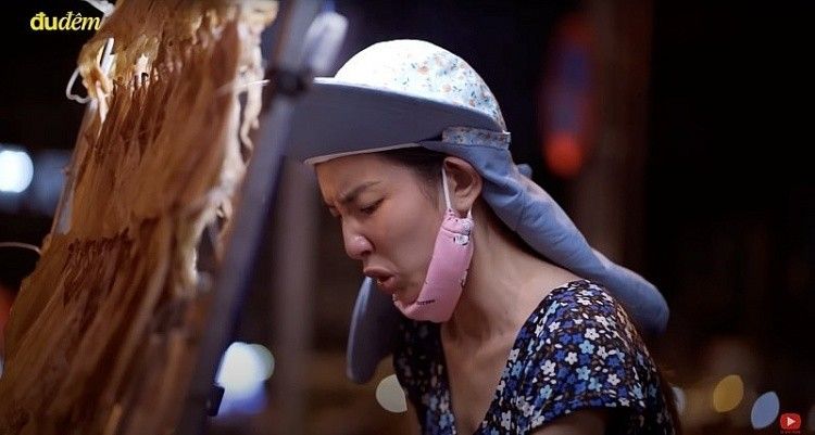 Thuỳ Tiên trong chuyên mục Đu Đêm Sài Gòn của mình đã từng mượn đồ bộ hoạ tiết hoa nhí của mẹ để vào vai người bán khô mực chiên. Cô có những biểu cảm vô cùng hài hước và được chia sẻ khắp các group lớn nhỏ.