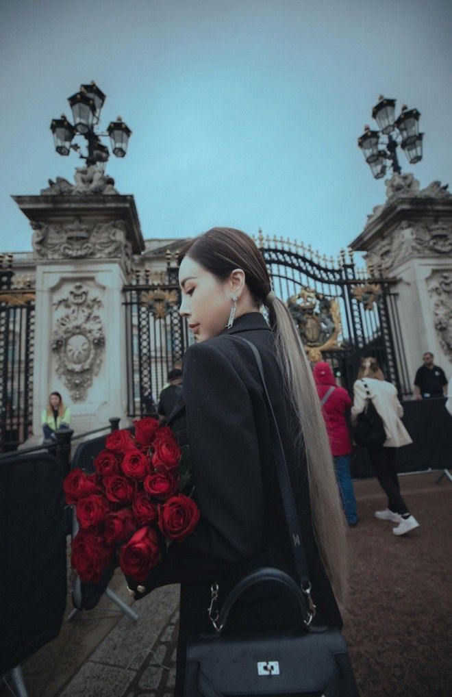 Hoàng Dung tiết lộ, cô đã mất khá nhiều thời gian đi khắp các con phố để tìm mua bằng được hoa hồng nhung trước khi ghé cung điện Buckingham.