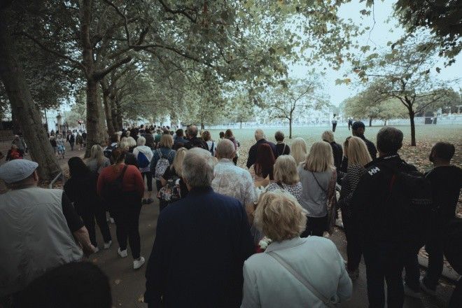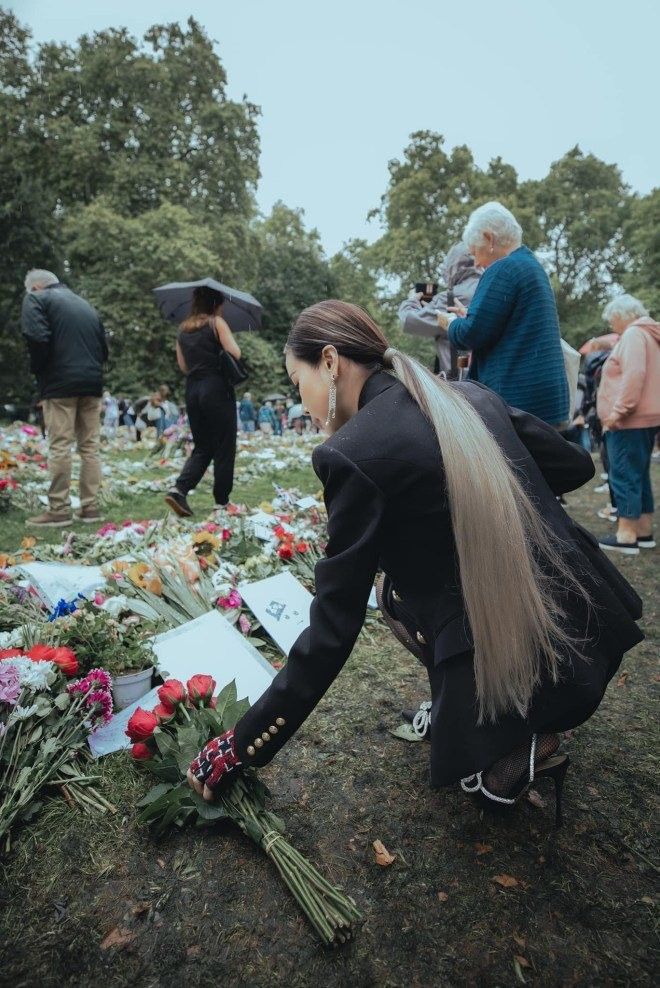Trong dòng người ấy, có không ít người nổi tiếng như Huấn luyện viên Antonio Conte của đội bóng Tottenham, hay các ngôi sao quốc tế như Elton John, David Beckam, Helen Mirren, Daniel Craig, Paul McCartney (ban nhạc The Beatles), Ozzy Osbourne, Leona Lewis, Kylie Minogue... Người đẹp kể, cô cảm nhận được sự kính trọng và niềm tiếc thương của người dân Anh dành cho Nữ hoàng Elizabeth II. Lẫn vào giữa những bó hoa, người dân nước Anh còn viết thiệp, vẽ tranh để thể hiện tình cảm.