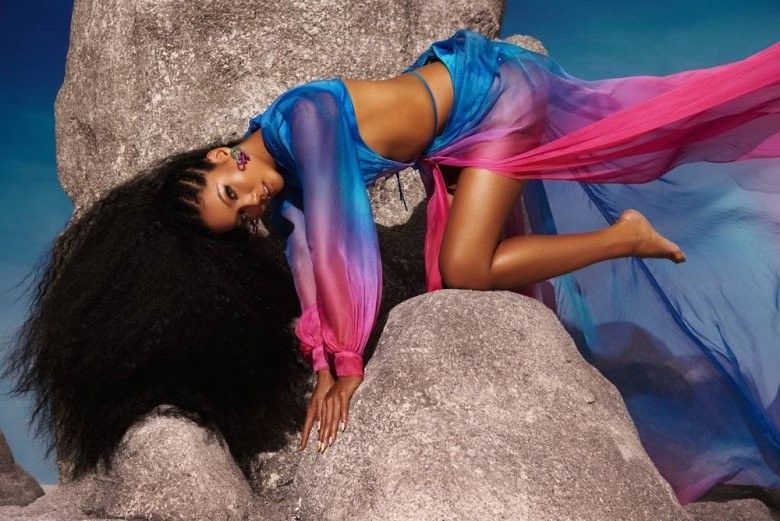 H'Hen Niê khoe vẻ đẹp như nàng tiên cá bên bờ biển.