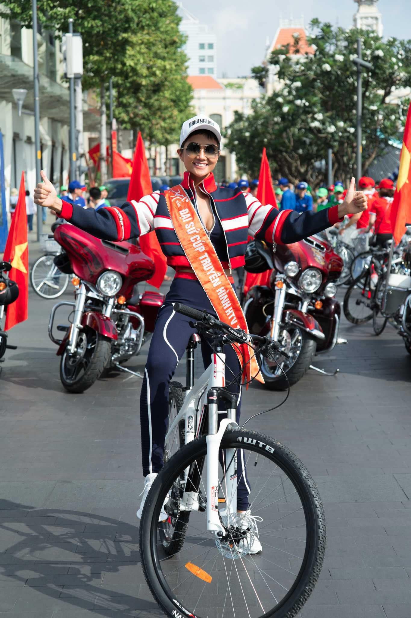 Không chỉ đốt năng lượng ở phòng tập gym, H'Hen Niê còn hết mình ở các hoạt động cộng đồng như: đạp xe, chạy, từ thiện, trồng rừng,...