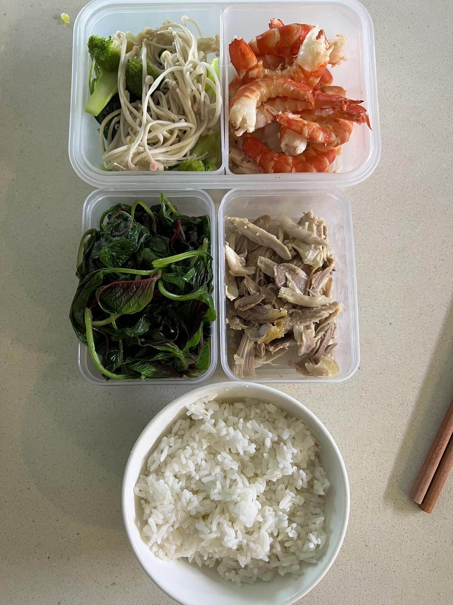 Nhìn hình ảnh chia sẻ mới thấy, muốn có dáng đẹp không khó, quan trọng là chị em có quyết tâm hay mục tiêu cụ thể để hướng tới hay không. Là người tập kháng lực, H'Hen Niê ý thức rất rõ việc phải giữ khối lượng cơ bắp. Khi không có đủ kích thích như tập, cô buộc phải cân bằng chế độ ăn. Thực đơn đủ protein là điều ưu tiên số 1. Chân dài bộc bạch, phần gà và rau sẽ ăn sáng còn tôm, súp lơ dành cho bữa trưa.