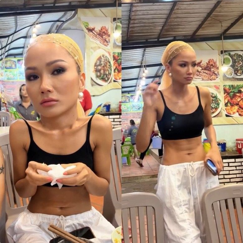 Khi ngồi thẳng lưng hay đi, người của H'Hen Niê không khom lại thì vòng 2 lại phẳng lì, nổi múi ao ước.