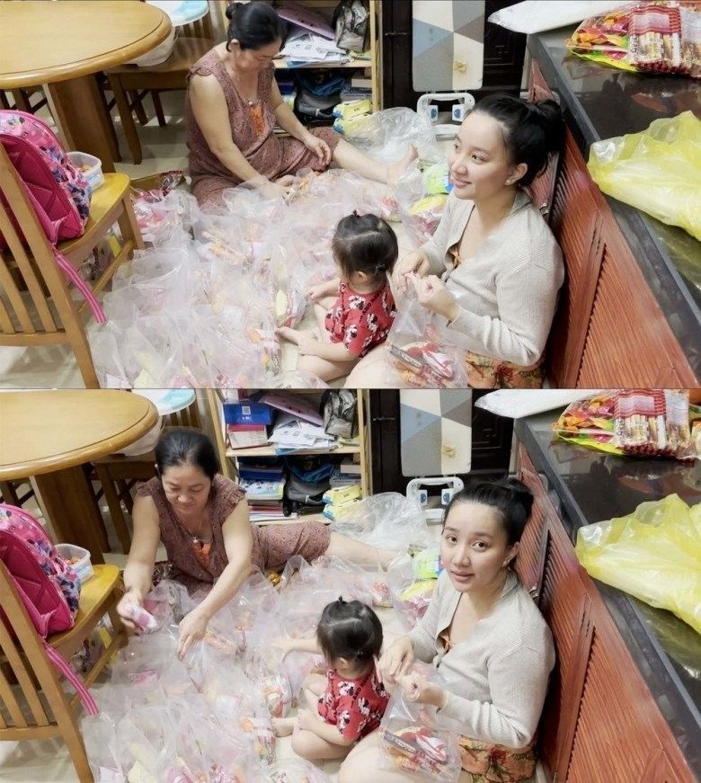 Ngoài ra, nam diễn viên còn đăng tải đoạn clip ghi lại khoảnh khắc Quỳnh Quỳnh và mẹ vợ đang ngồi chuẩn bị từng phần quà cho 30 bạn cùng lớp của con gái. Bà xã Lê Dương Bảo Lâm cho biết cô đã chi 10 triệu đồng để mua quà vặt như bánh kem, bánh ngọt, nước uống và những món ăn cho các bé ăn uống trong tiệc sinh nhật.