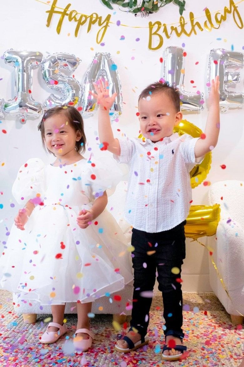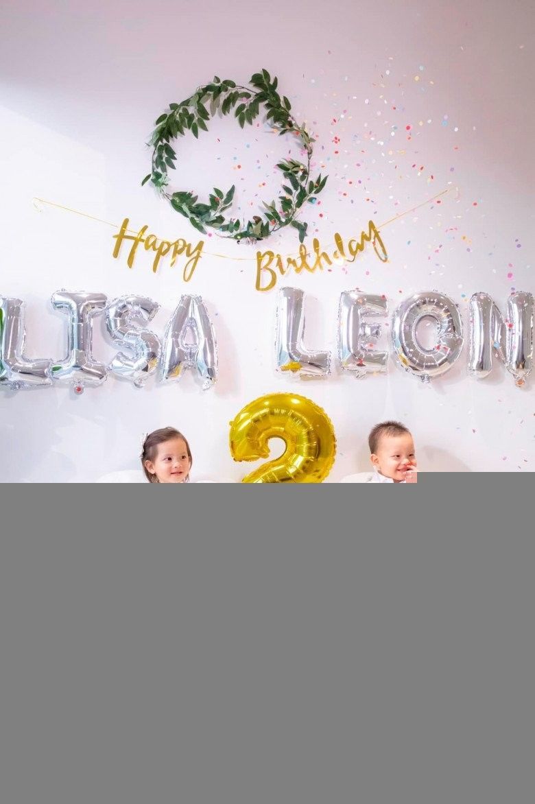 Cùng với bài viết là loạt hình ảnh Lisa - Leon mừng sinh nhật trong nhà. "Nữ hoàng giải trí" trang trí một góc biệt thự 30 tỷ thành nơi chụp hình cho con với chữ bong bóng và kim tuyến. Lisa diện đầm công chúa bồng bềnh, trông vô cùng đáng yêu. Trong khi đó, Leon diện áo sơ mi vin thùng bảnh bao, ra dáng "thanh niên".