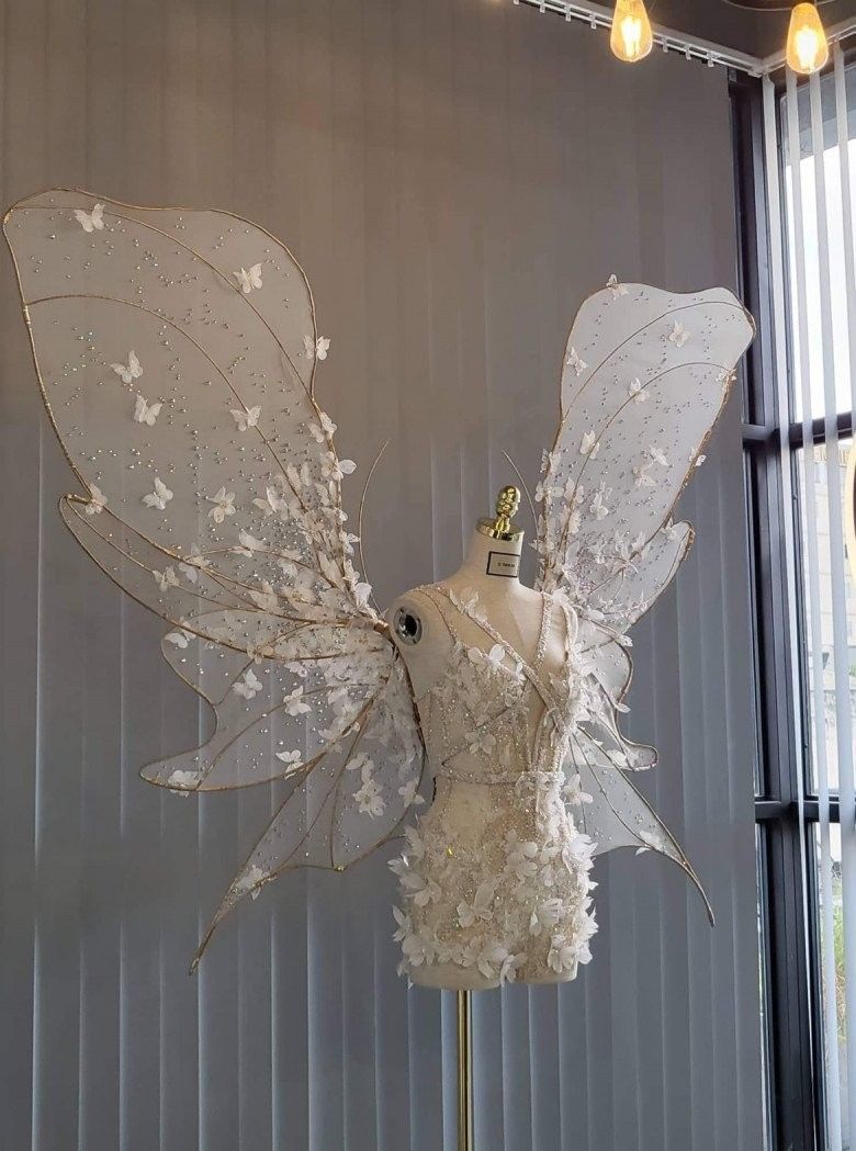 Phần cánh trong suốt cùng hàng ngàn cánh bướm tuyệt đẹp được đính kết độc đáo.