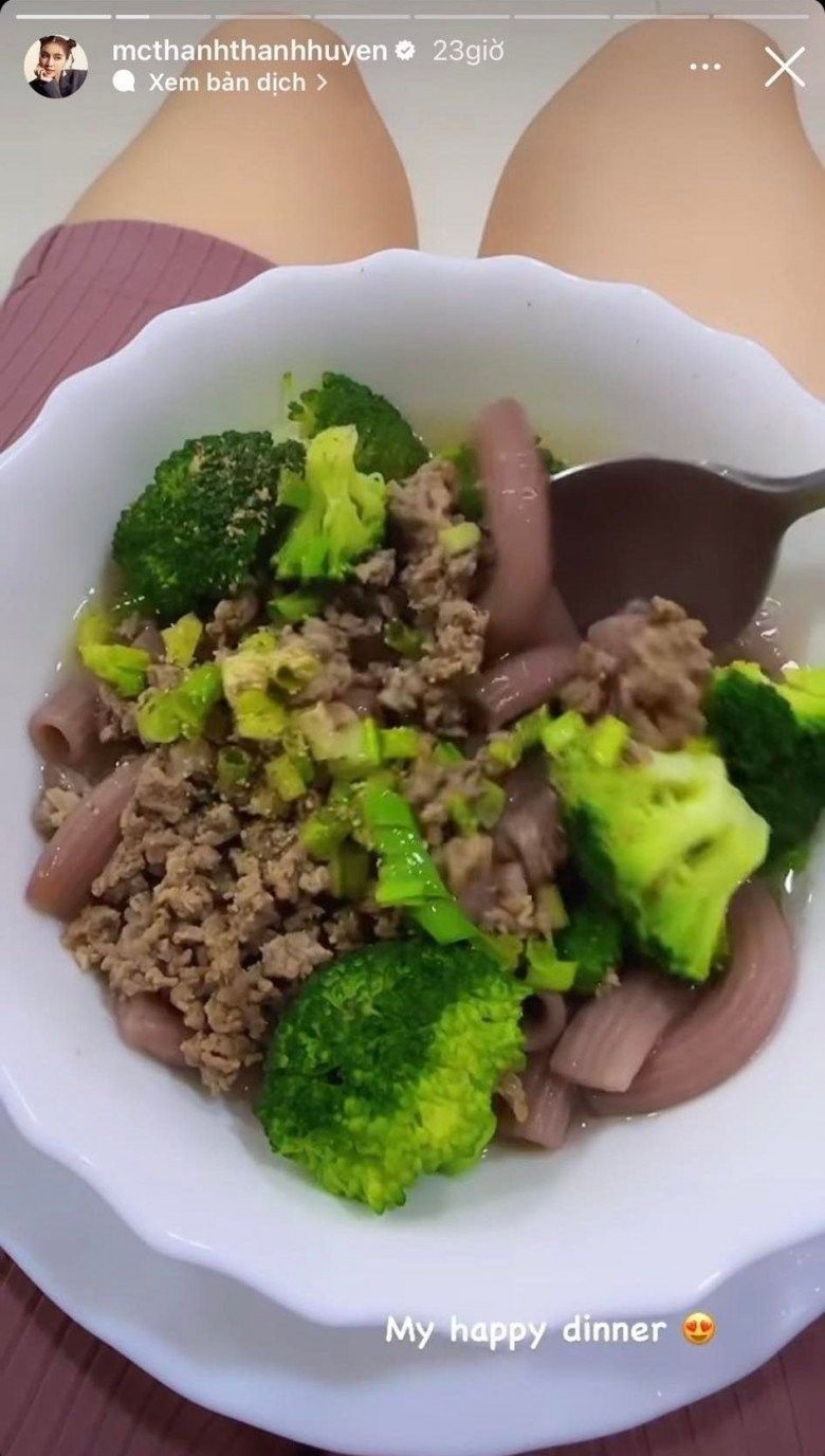 Tuy đăng tải hình ảnh sửa soạn mâm cỗ truyền thống đón Tết nơi xa xứ nhưng cô lại phải "thắt lưng buộc bụng" giữ dáng với đồ ăn eat clean ít dầu mỡ.