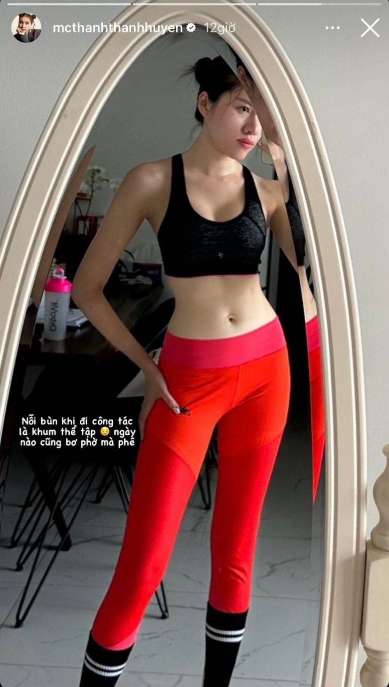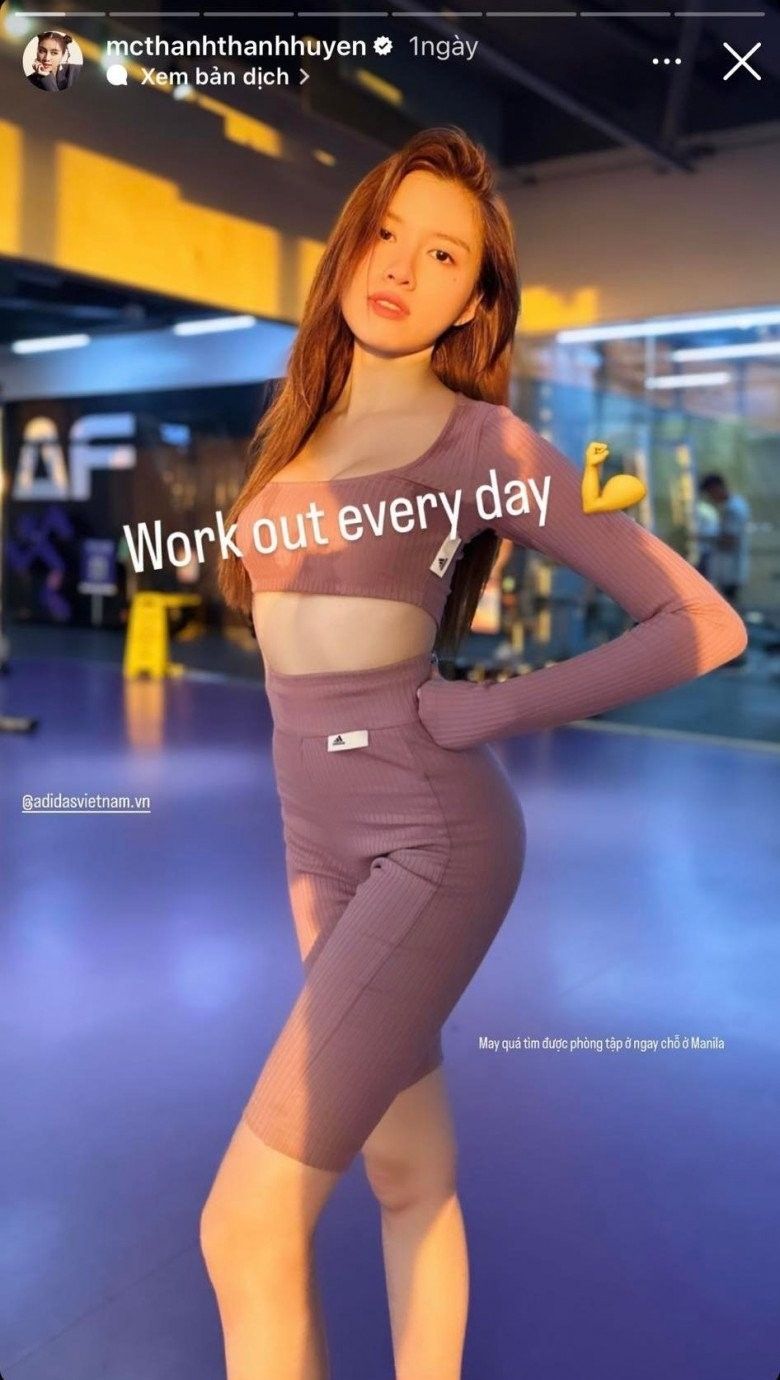 Trước khi đi sang nước bạn để học tập, nữ MC đã rất chăm chỉ cho việc rèn sắc vóc dù cô sở hữu body đã đạt chuẩn trước đó. Người đẹp sở hữu đôi chân dài 1m1 thẳng tắp và thon dài.