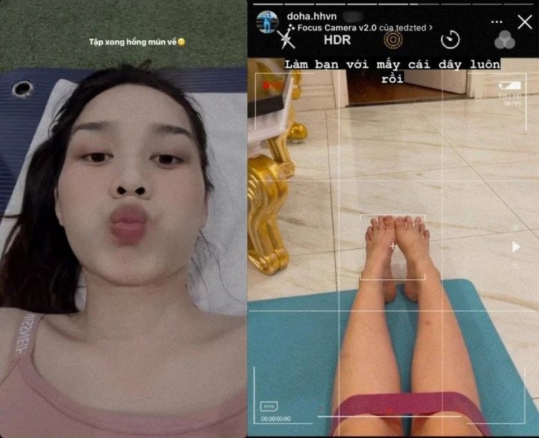 Được biết, để có được vóc dáng này, Đỗ Thị Hà cũng phải trải tốn không ít thời gian và "mồ hôi". Nàng hậu tập luyện chăm chỉ tại phòng gym kết hợp với chế độ ăn kiêng khoa học. Mới đây, cô nàng còn vừa chia sẻ một thói quen giữ gìn sắc vóc mới của bản thân. Nàng hậu chia sẻ hình ảnh tập yoga tại nhà trên story cá nhân. Được biết, thời gian gần đây, nàng hậu tự tập cho bản thân thói quen tập yoga mỗi sáng