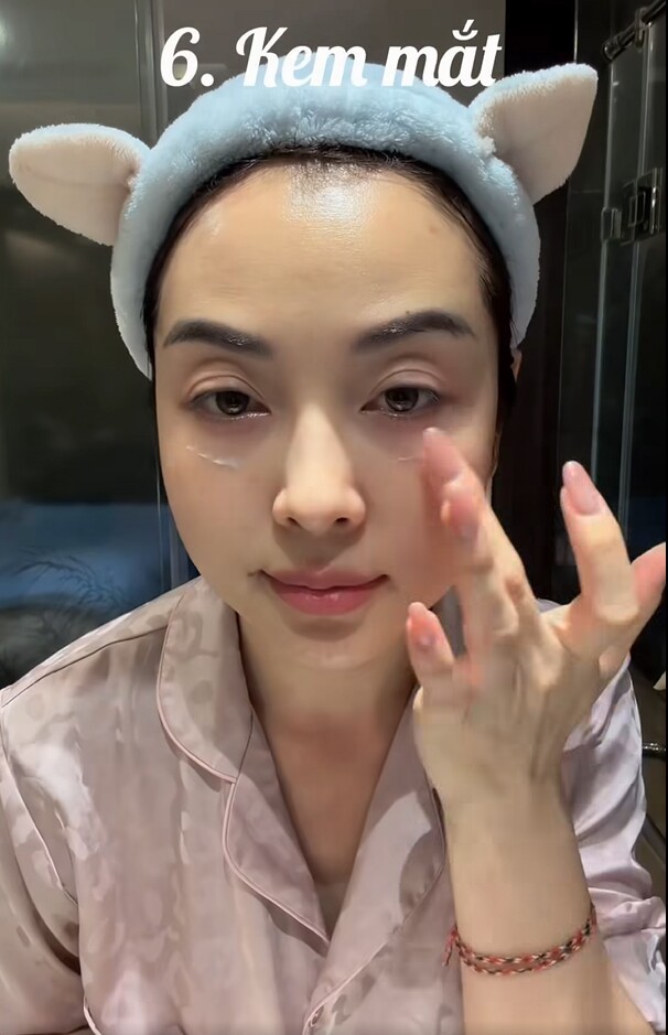 Nàng hậu đặc biệt chú trọng đến vùng da quanh mắt - khu vực mỏng manh và nhạy cảm, cũng là nơi dễ “tố cáo” dấu hiệu tuổi tác rõ rệt nhất. Jennifer Phạm ưu tiên sử dụng kem mắt nhằm cải thiện quầng thâm, làm dịu bọng mắt và hỗ trợ làm mờ các nếp nhăn. Việc duy trì bước chăm sóc này đều đặn giúp ánh nhìn của mỹ nhân luôn tươi tắn, rạng rỡ, ngay cả khi không trang điểm.