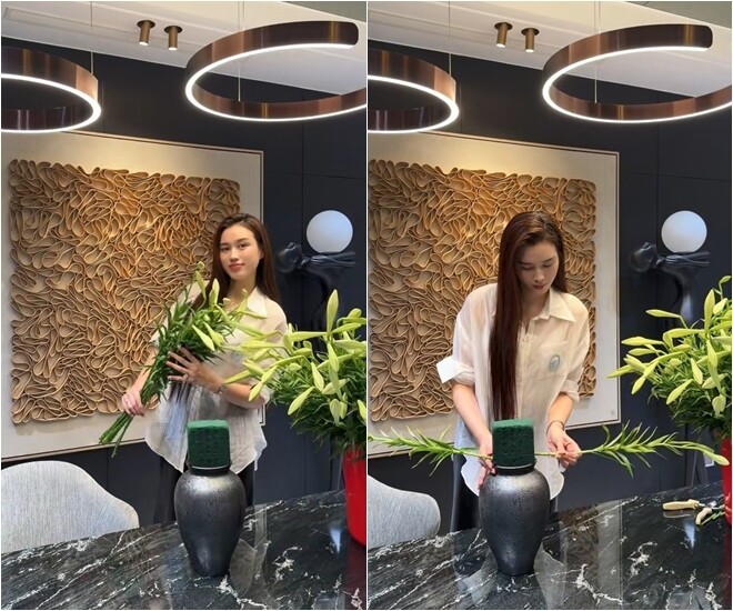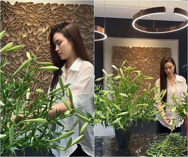 Mới đây, Hoa hậu Đỗ Thị Hà đã đăng tải video ghi lại quá trình tự tay cắm một bình hoa loa kèn lớn tại nhà. Trong video, cô thực hiện các bước sơ chế và cắm hoa trên mút xốp để tạo dáng tỏa tròn đều cho bình hoa. Đáng chú ý, nàng hậu đã chia sẻ những quan điểm cá nhân về loài hoa đặc trưng của tháng 4 này: