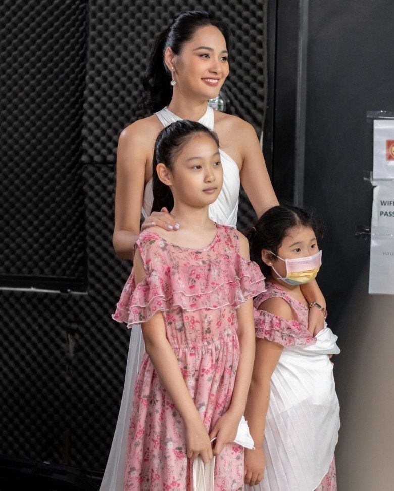 Dù rời xa showbiz để chuyên tâm dạy con nhưng thỉnh thoảng Hoa hậu Hương Giang vẫn nhận lời mời làm giám khảo ở các cuộc thi Hoa hậu hoặc cho con thử sức với vai trò làm mẫu nhí. Các cô bé nhà Hương Giang được nhận xét không chỉ ưu thế về ngoại hình mà còn rất có tố chất làm người nổi tiếng như mẹ.