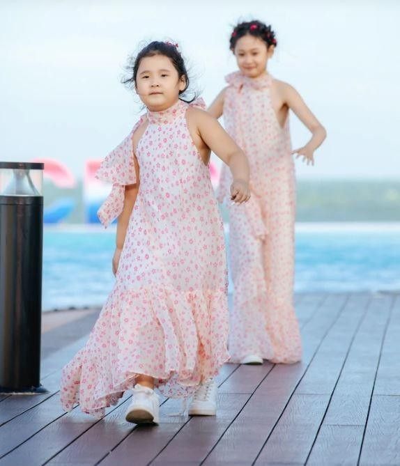 Ngoại hình 2 con gái của Hương Giang luôn nổi bật mỗi lần hiếm hoi xuất hiện cùng mẹ bởi các nhóc tỳ thừa hưởng chiều cao rất tốt từ cả bố và mẹ.