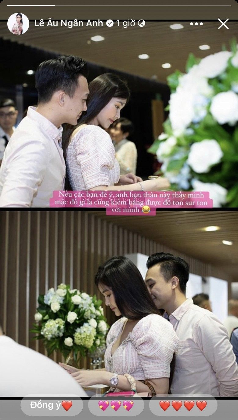 Ngân Anh hạnh phúc khi chia sẻ khoảnh khắc thời trang đồng điệu cùng vị hôn phu của mình.