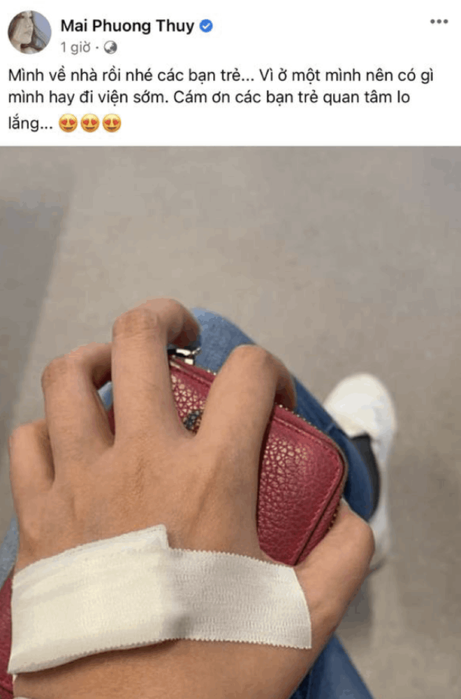 Khi đó, Mai Phương Thúy không chia sẻ cụ thể mình mắc bệnh gì, mà chỉ thông báo đã xuất viện sau 1 đêm nằm theo dõi: "Mình về nhà rồi nhé các bạn trẻ. Vì ở một mình nên có gì mình hay đi viện sớm. Cảm ơn các bạn trẻ quan tâm lo lắng". Sau đấy ít ngày, người đẹp lại livestream chia sẻ về việc đổ bệnh: "Mình 'ốm lên ốm xuống', tình hình dịch bệnh căng thẳng nên mình cũng không đi đâu. Sài Gòn vừa trở trời đổi gió là mình ốm luôn. Mọi người cứ xác định là nhiệt độ trong không khí thay đổi đột ngột thì Thúy sẽ ốm. Cũng may mình chỉ mệt nên nằm ở nhà thôi, vẫn ăn ngon".