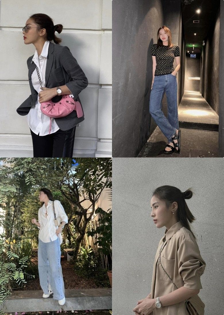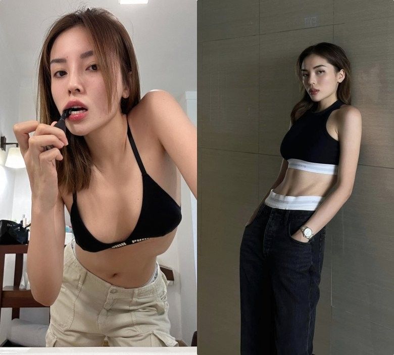 Thực tế, là người hoạt động nghệ thuật, mỹ nhân 9X vẫn linh hoạt ở nhiều khía cạnh. Đi tiệc, người đẹp vẫn diện đầm dạ hội hay xuống phố với đồ phong cách menswear song đã mắt nhất vẫn là ngắm cô nàng trễ nải khoe dáng trước gương. Combo quen thuộc của người đẹp chính là mặc đồ lót thể thao bên trong và kéo hờ hững chiếc quần ống suông, đũng thụng xuống để lộ lấp lửng phần underwear.