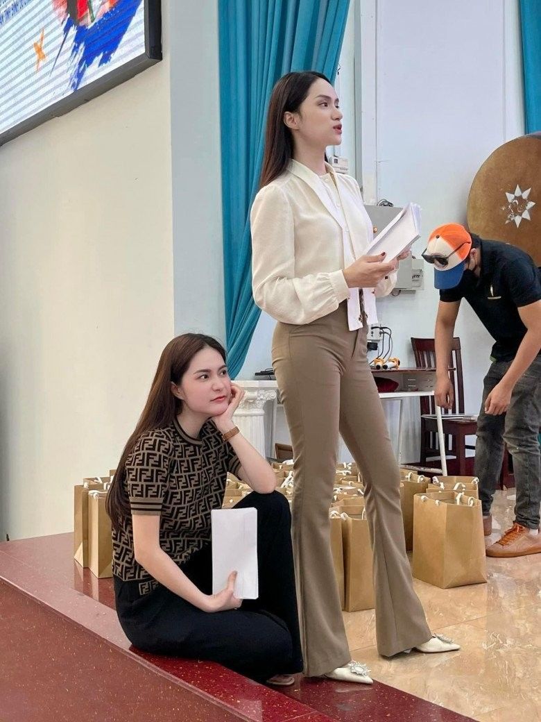 Những chiếc quần âu ống loe có tần suất xuất hiện nhiều trên trang cá nhân của người đẹp trong mọi hoạt động. Từ đi làm cho đến đi từ thiện, cô đều trưng dụng hết mức có thể với áo blouse tay bồng.