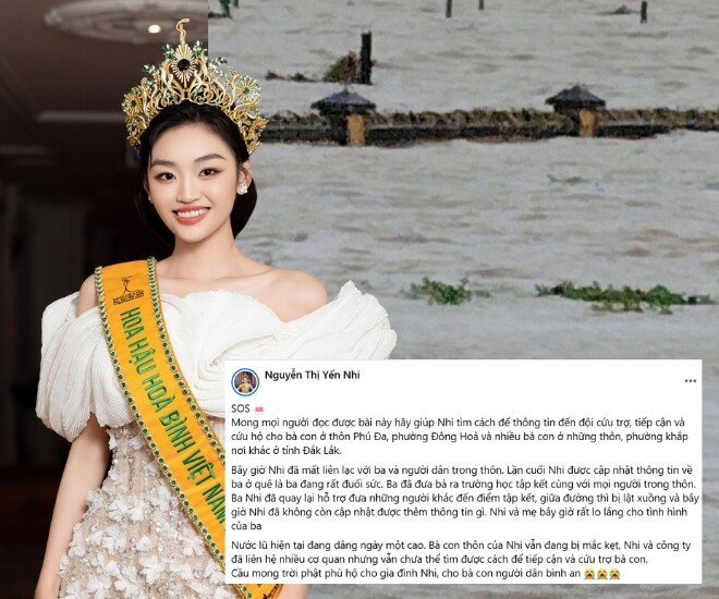Chiều 20/11, Hoa hậu Yến Nhi đăng tải thông báo khẩn trên trang cá nhân để nhờ sự giúp đỡ từ đội cứu hộ, chính quyền tại quê nhà Đắk Lắk do mất liên lạc với bố ruột.