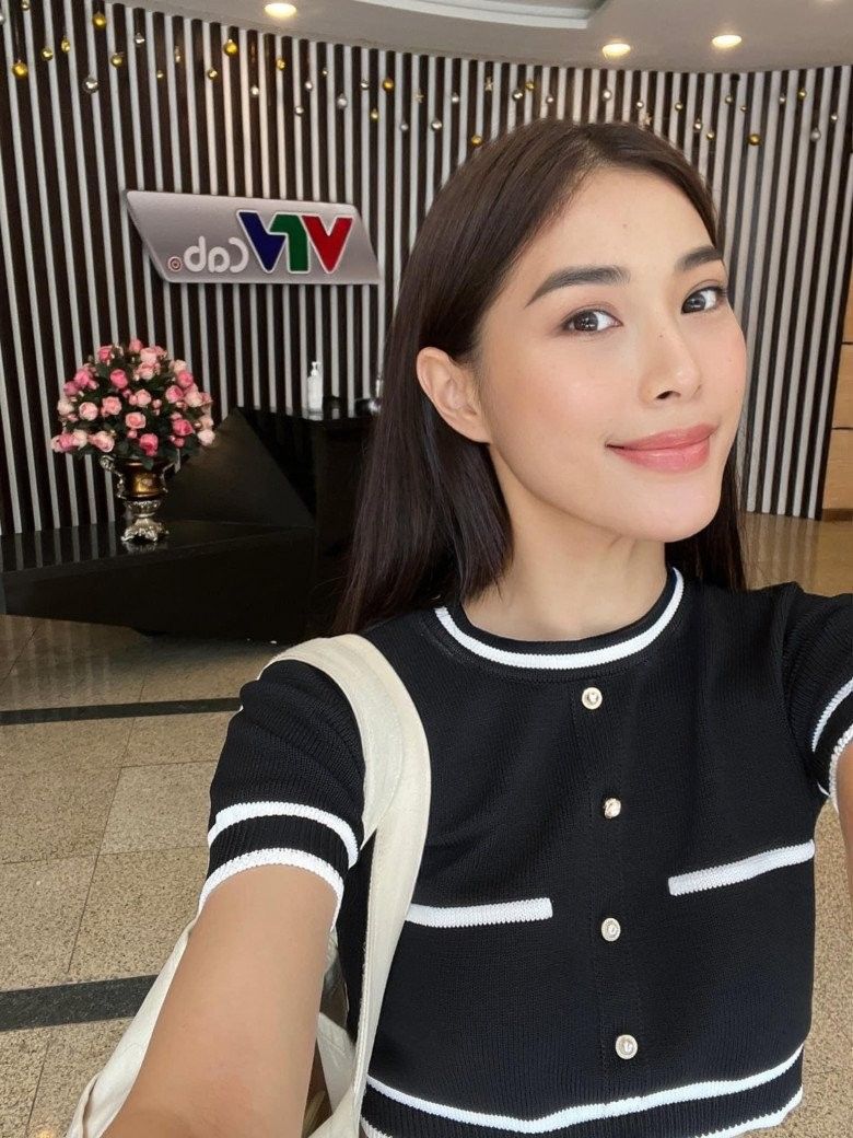 Khi lên sóng, người đẹp sinh năm 2002 cũng luôn diện những trang phục không cầu kỳ. Cô ưu tiên lựa chọn trang phục có màu sắc không quá nổi bật. Những kiểu dáng mà Thu Huyền chọn cũng rất tôn dáng, ví như chiếc chân váy cạp cao màu be này kết hợp cùng chiếc áo màu đen đơn giản, Thu Huyền vẫn có thể khoe vóc dáng thon gọn bao người mê.