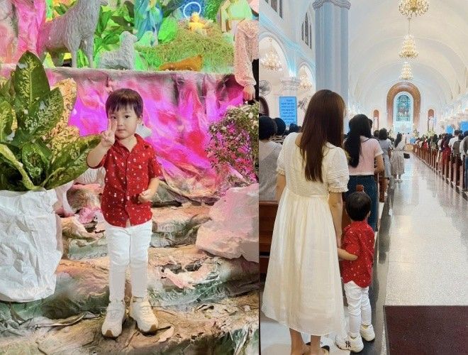 Dịp đầu năm 2023, bé Bo - con trai Hòa Minzy diện áo dài đi chơi Tết.
