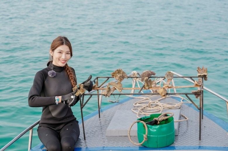Chế Nguyễn Quỳnh Châu đảm nhận vai trò người bảo vệ biển với nhiệm vụ dọn rác đáy biển, trồng san hô ở một số khu vực.
