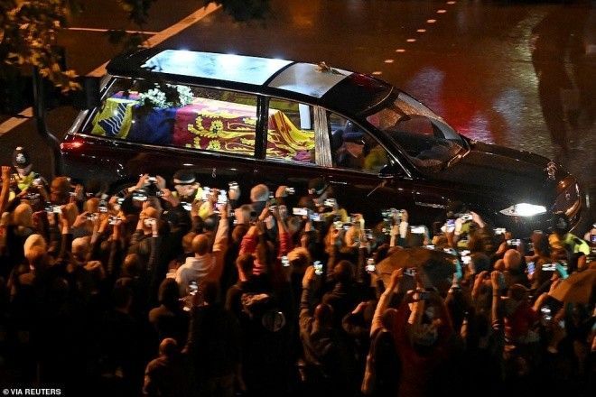 Được biết, quan tài của Nữ hoàng quá cố được đặt trong một chiếc xe có kính trong suốt để người dân có thể nhìn thấy bà. Thời điểm linh cữu được đưa về London, trời đã đổ mưa. Dù vậy, đã có hàng nghìn người dân đứng dọc hai bên đường để chờ đón linh cữu Nữ hoàng.