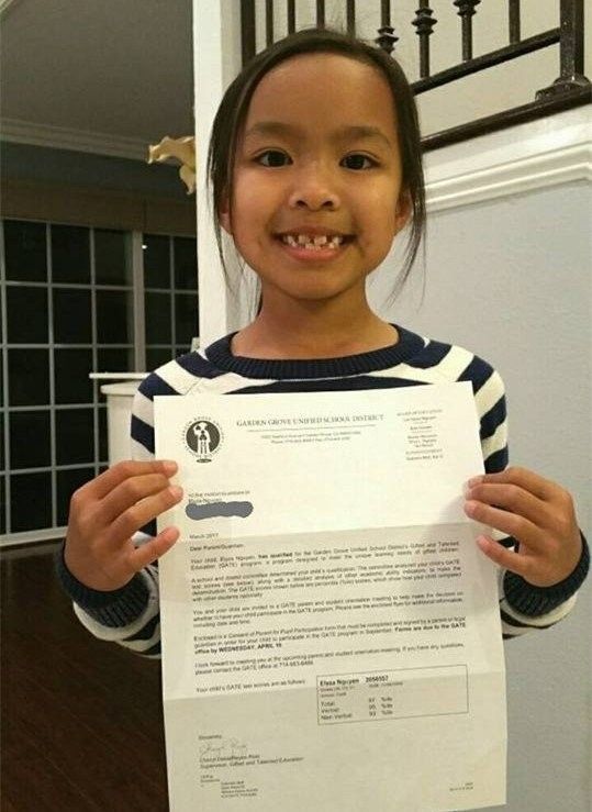 Sau khi theo học tiểu học , Elyza có điểm số ở tất cả các môn đều đạt trong Top cao nhất toàn Tiểu bang California, điểm Toán của cô bé đạt mức tuyệt đối là 2621 điểm.