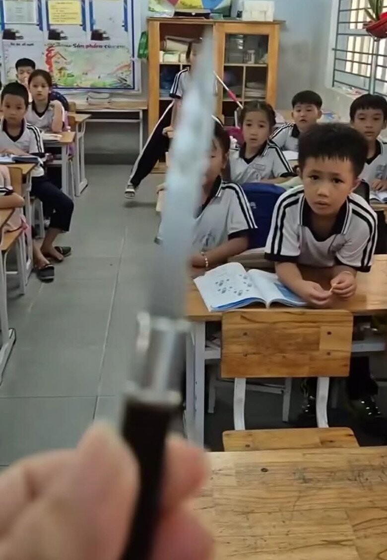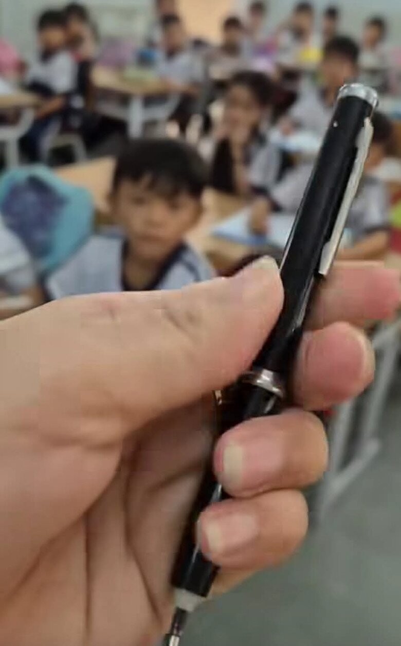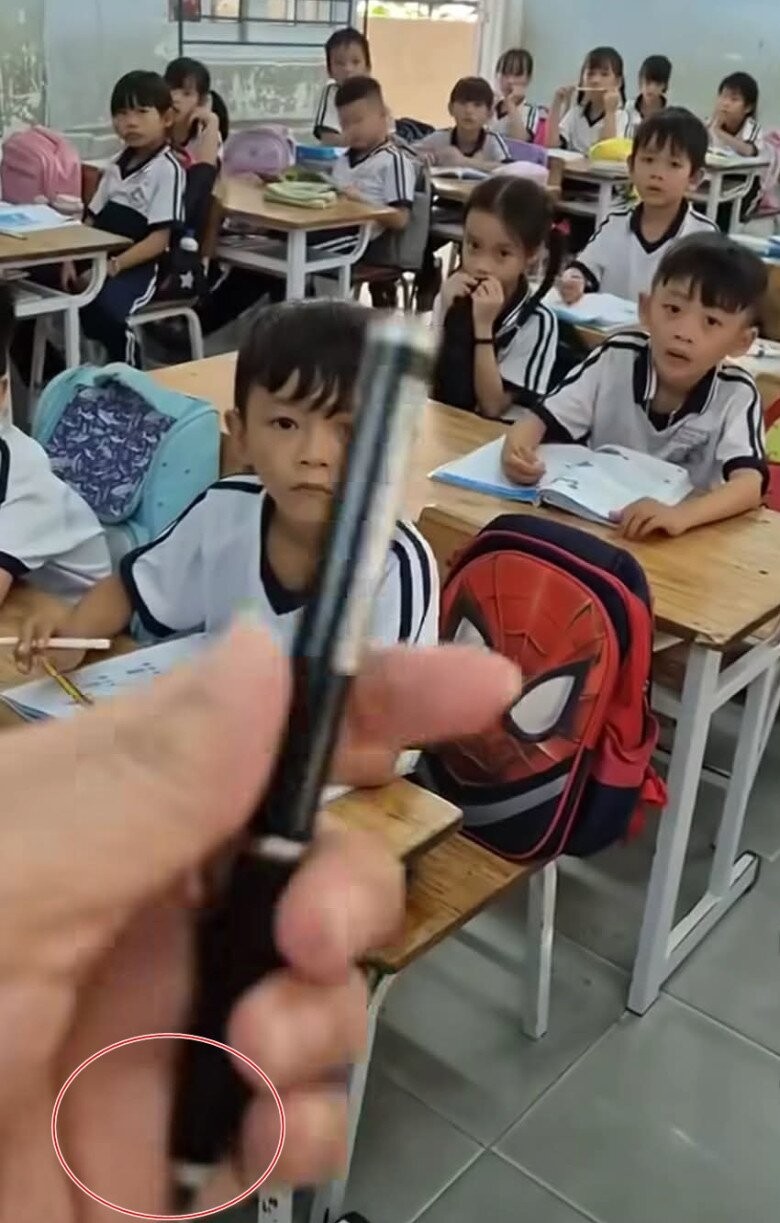 Cụ thể, một đoạn clip ngắn ghi lại cảnh cô giáo đang giới thiệu về chiếc bút kỳ lạ với các em học sinh tại lớp học, đồng thời cô lên tiếng nhắc nhở các em học sinh tuyệt đối không được sử dụng loại bút nguy hiểm như thế này.