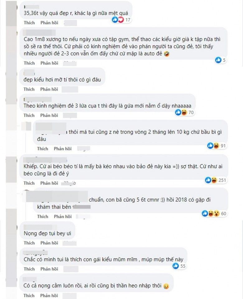 Một số ý kiến cho rằng, Hoa hậu Việt Nam 2006 tăng cân. Một số khác lại áp đặt kinh nghiệm cá nhân cho rằng, mỹ nhân 8X vừa mới "đẻ dậy". Song nhiều người phản bác cho rằng, không phải ai tăng cân là cũng đều bị ví là mới sinh xong.