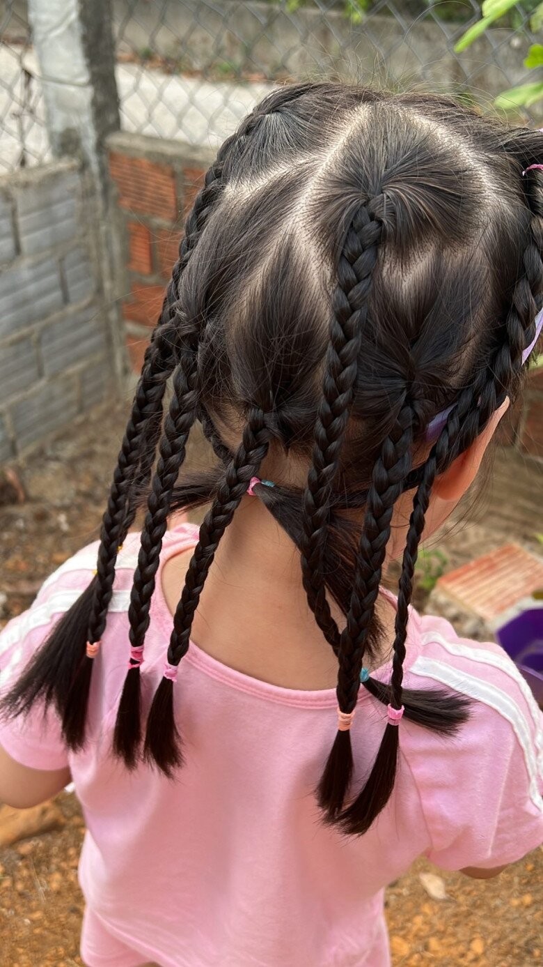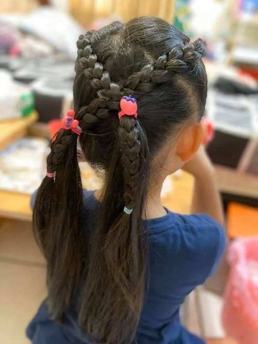 Có lẽ cũng chính nhờ những kiểu tóc dễ thương thế này lại chính là động lực thúc đẩy các bé thích đi học mỗi ngày để được cô tết tóc đẹp cho.