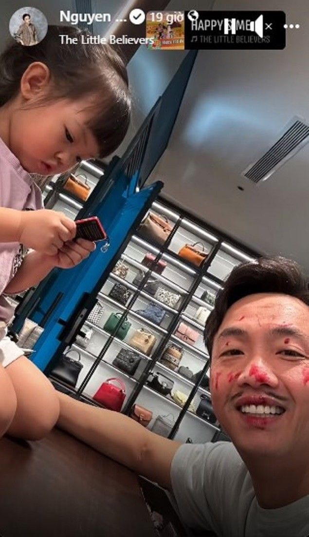 Cũng chẳng khác gì mấy so với Cường Đô La, diễn viên hài Trường Giang cũng nổi tiếng là ông bố chiều con nhất nhì trong showbiz. Dù rất bận rộn với công việc đi diễn và kinh doanh nhà hàng, song cứ có thời gian rảnh là Trường Giang lại dành hết cho con gái yêu. Đã không ít lần nam danh hài đăng tải hình ảnh mặt mũi tèm lem lên trang cá nhân khi được con gái “chăm sóc da” bằng sữa chua.