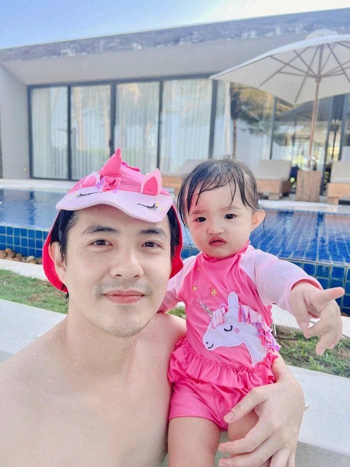 Nhìn dáng vẻ bất lực của Ông Cao Thắng, ai cũng phải phì cười, nhưng đằng sau vẻ bất lực giả vờ ấy là niềm hạnh phúc vô bờ bến mà “ông bố quốc dân” này đang tận hưởng. Bởi có một lần, ông xã Đông Nhi đưa con gái đi bơi, nhưng có vẻ như Winnie không thích đội chiếc mũ bơi màu hồng hình con ngựa nên đã “chuyển giao” luôn qua cho Ông Cao Thắng. Và chẳng hề ngại ngùng, anh đã ghi lại ngay khoảnh khắc vui vẻ của hai cha con. Hay chẳng hạn như anh cũng đã từng yêu chiều hai “nóc nhà” khi sẵn sàng đeo lên đầu chiếc bờm tai gấu rất dễ thương.