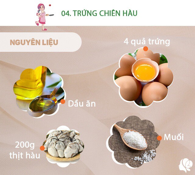 Chuẩn bị: 4 quả trứng gà, 200g thịt hàu, muối vừa ăn, hành lá thái nhỏ, dầu ăn.