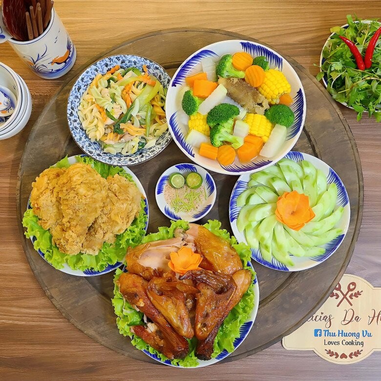 Tham khảo mâm cơm nhà chị Vũ Thu Hương để có thêm ý tưởng cho bữa cơm nhà mình. Mâm cơm này gồm các món: