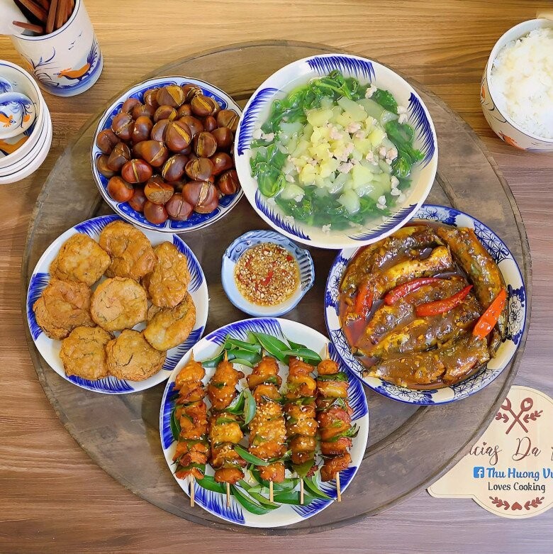 Tham khảo mâm cơm nhà chị Vũ Thu Hương để có thêm ý tưởng cho bữa cơm nhà mình. Mâm cơm này gồm các món: