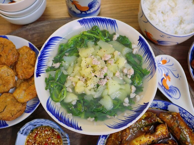 - Canh khoai tây rau cải cúc thịt băm: 15.000đ