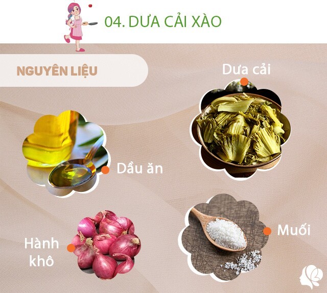 Chuẩn bị: 1 bát dưa cải to, dầu ăn, muối (nếu cần), xíu mì chính (nếu thích), 1 củ hành khô.