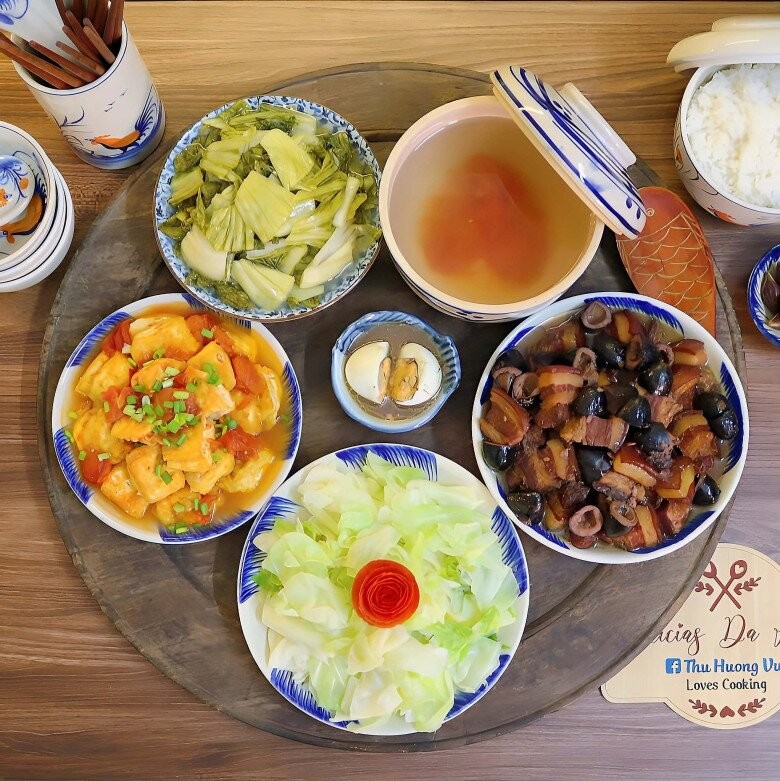 Tham khảo mâm cơm nhà chị Vũ Thu Hương để có thêm ý tưởng cho bữa cơm nhà mình. Mâm cơm này gồm các món: