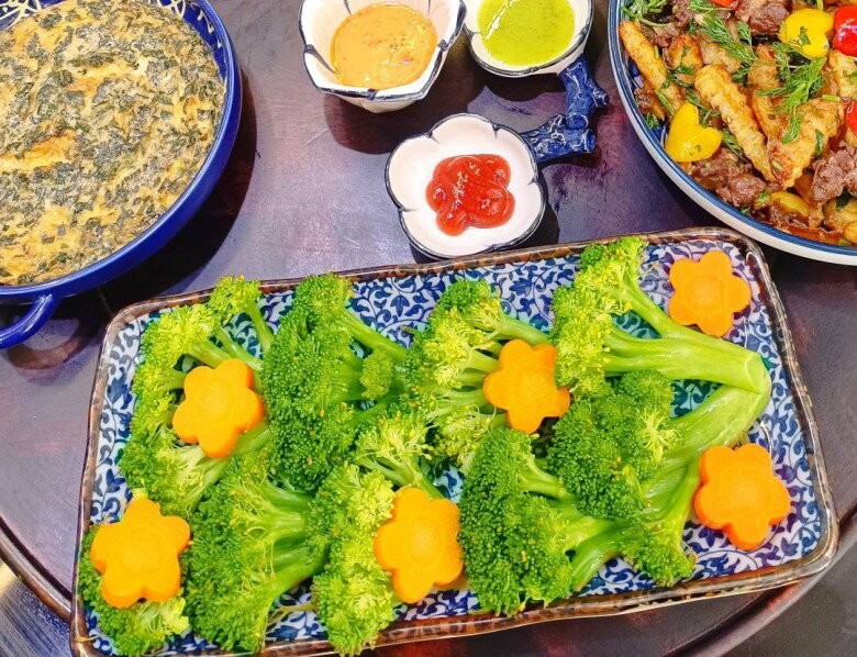 Chuẩn bị: 1 cái súp lơ, 1 củ cà rốt, xíu muối.