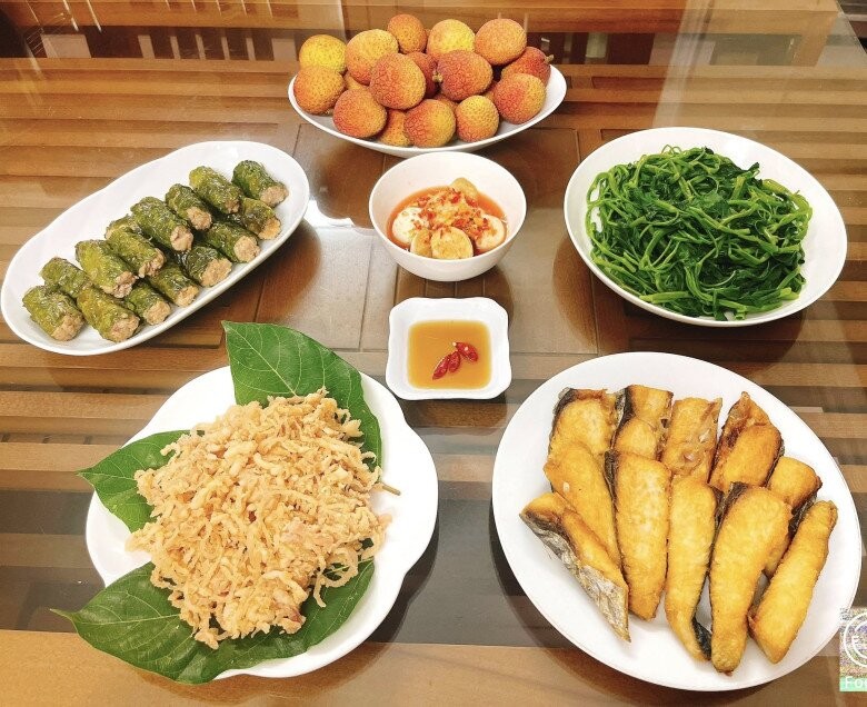 Mâm cơm hôm nay là sự kết hợp của những món ăn quen thuộc nhưng đầy hấp dẫn, vừa dân dã vừa tròn vị. Cá thu chiên vàng ruộm, lớp ngoài giòn nhẹ, phần thịt bên trong vẫn giữ được độ mềm ngọt tự nhiên, ăn cùng nước mắm tỏi ớt càng thêm đậm đà. Đĩa rau muống luộc xanh mướt, giòn ngon, thanh mát giúp cân bằng vị giác và khiến bữa cơm thêm dễ ăn. Chả lá lốt thơm lừng, phần nhân đậm vị quyện với hương lá lốt đặc trưng tạo nên sức hấp dẫn khó cưỡng. Điểm nhấn thú vị là nem nắm bùi thơm, vị chua nhẹ hài hòa, ăn kèm rau sống lại càng cuốn. Một mâm cơm giản dị, không cầu kỳ nhưng đủ khiến cả nhà ăn ngon miệng và thấy ấm lòng.