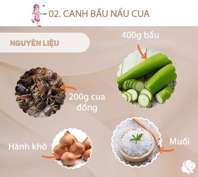 Chuẩn bị: 400g bầu, 200g cua đồng, hành khô, dầu ăn, muối.