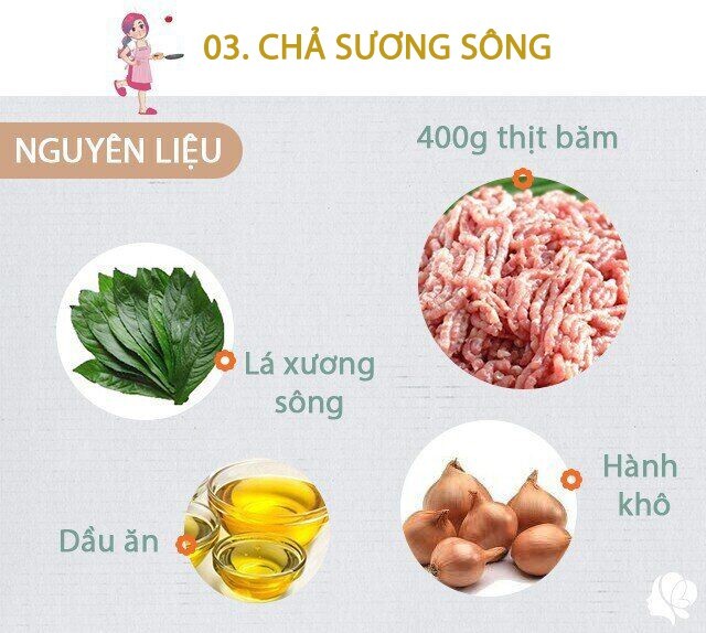 Chuẩn bị: 300g thịt lợn băm, một nắm lá xương sông rửa sạch, 1 củ hành khô, dầu ăn, hành lá xắt nhỏ, muối.